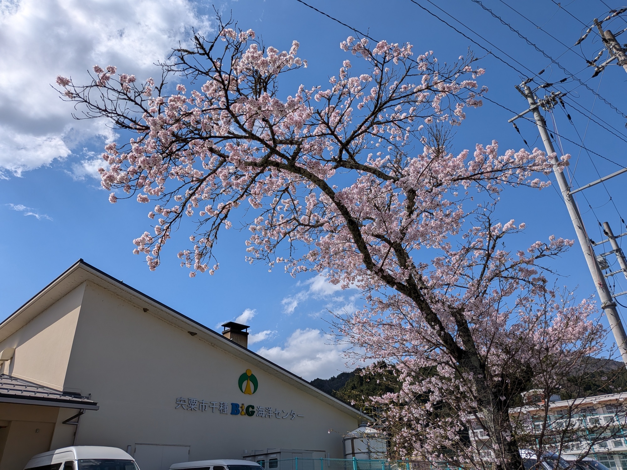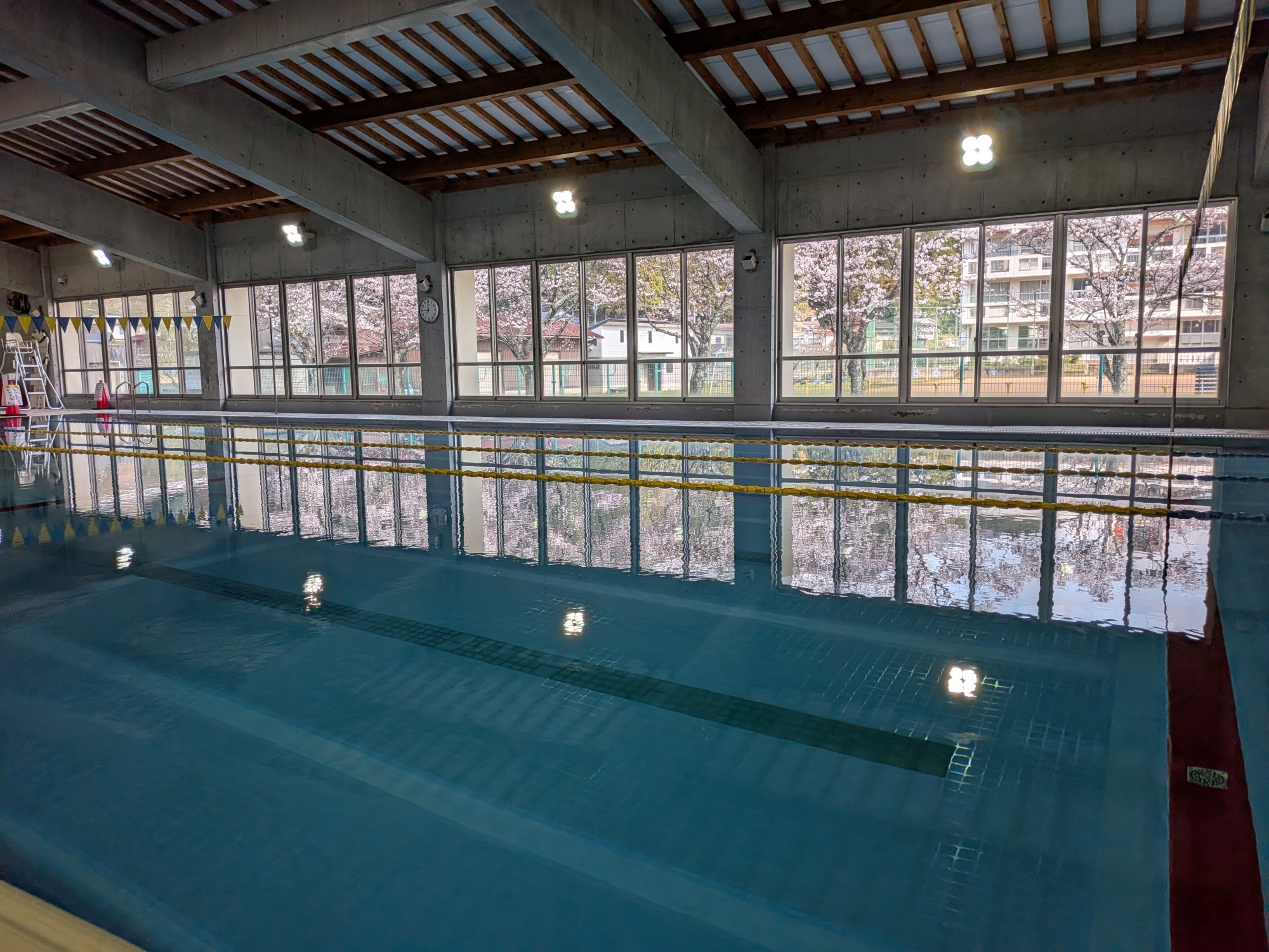 プールから桜🌸を眺めながら、水中ウォーキングはいかがですか。