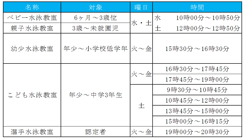 ・練習振替レッスンは、こども水泳教室及びベビー・親子水泳教室のみとなり、お休みした日から30日以内で練習振替レッスンが出来ます。