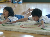 サーキットトレーニングを導入しています。教室を存分に活かしてもらうために、学校体育で行う種目を待ち時間なく、体を動かし続けるので、心肺機能や筋力アップに効果を発揮し、健康的な体作りに繋がります。