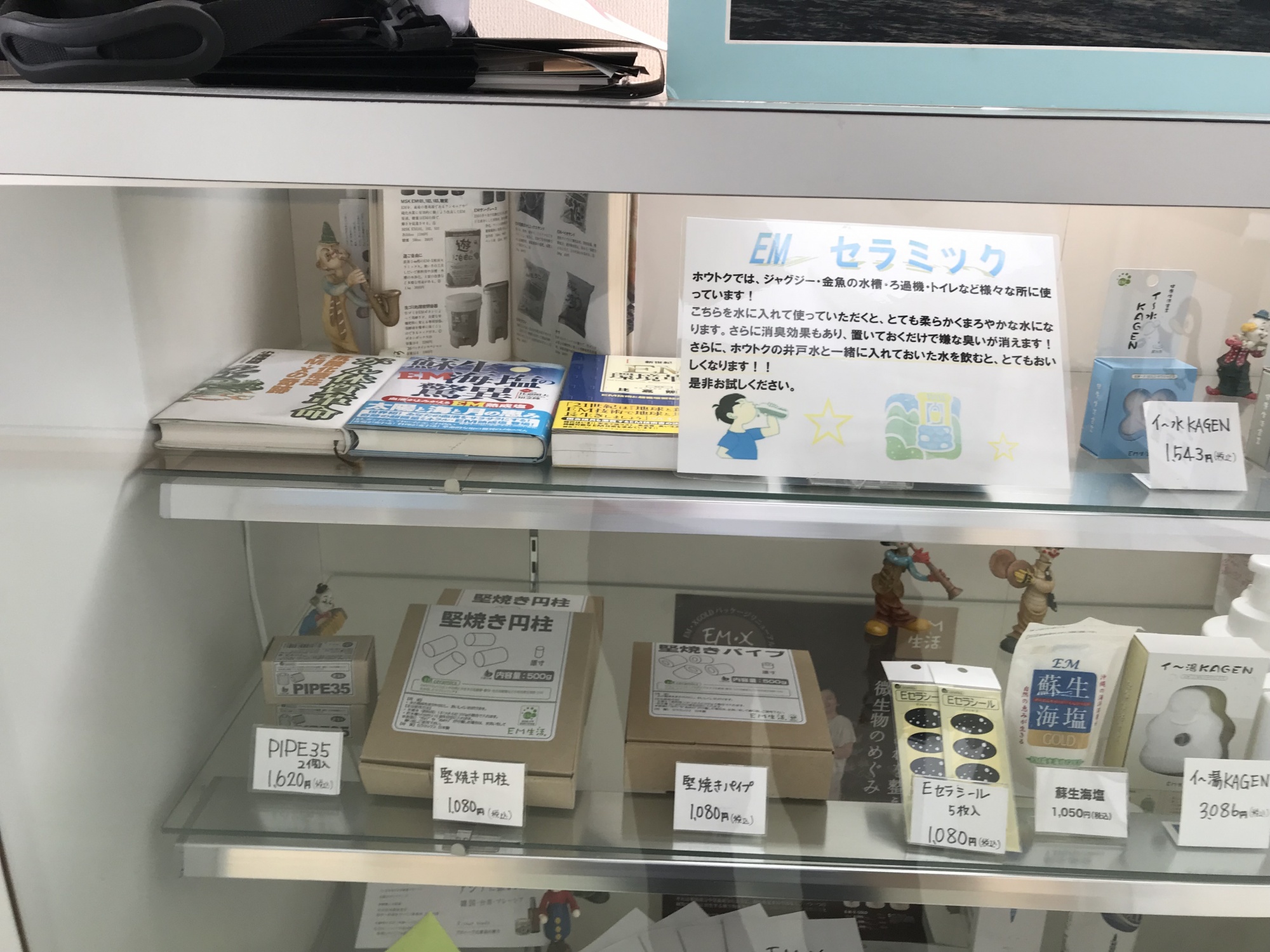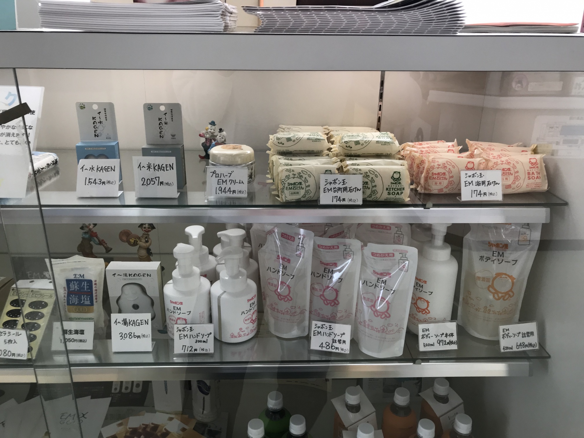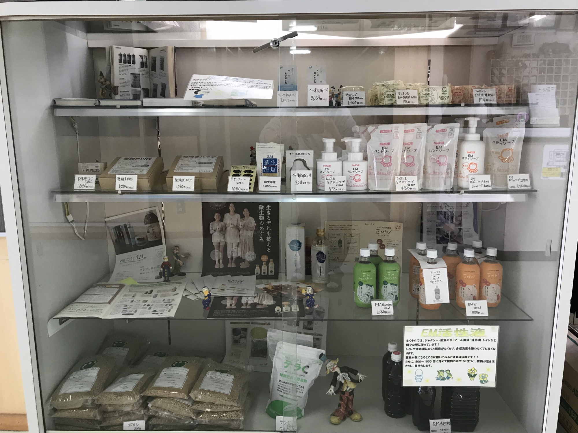 フロント前で元気に販売中!! フロント前のショップエリアでは、EM製品をはじめ、 色々なグッズを販売しております! 季節的な野菜や果物も充実販売しておりますので、 お立ち寄りの際にご覧ください!![]()