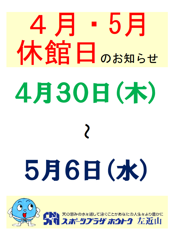 | 休館日 | 年末・年始 ※施設メンテナンス及び行事により休館となる場合があります。 |