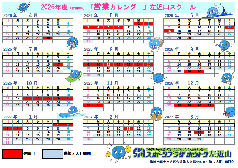 いつも当スクールをご利用いただき 誠にありがとうございます。 2026年度4月からのカレンダーができあがりました。カレンダーのダウンロードはこちらから↓ 営業カレンダー