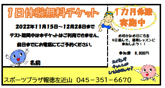 やらなきゃもったいない! 水中プログラム、ご用意してます。 9月17日(水)~11月30日(日) 秋からお子様と一緒に新...