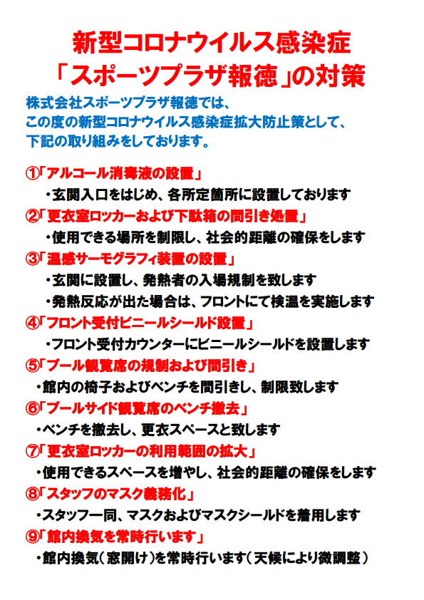 いつもスポーツプラザ報徳をご利用いただき 誠にありがとうございます。 現在新型コロナウイルスの第6波の禍中にあり、 休園...