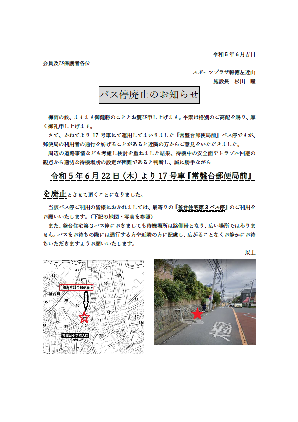 【重要】17号車 バス停廃止のお知らせ