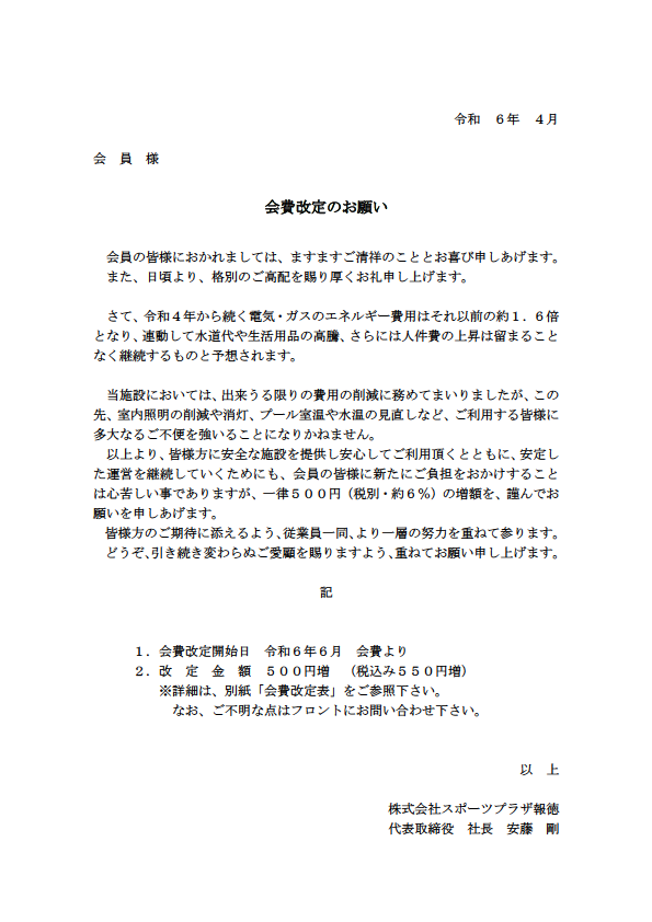 【重要】会費改定のお知らせ