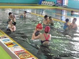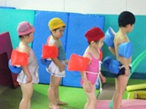フロアや用具を使用しアスレチック的な事も取り入れ、当社指導カリキュラムの”すいみんぐステップノート”にそって指導致します。